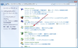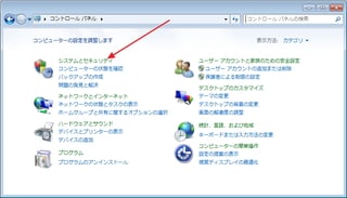 ①コントロールパネルを開いて、「システムとセキュリティ」をクリック。