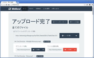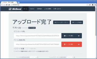 アップロードが完了すると、ダウンロード・リンクなどが表示されます。