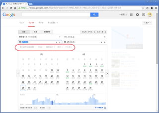出発日・到着日欄をクリックすると、カレンダーが出ます。
