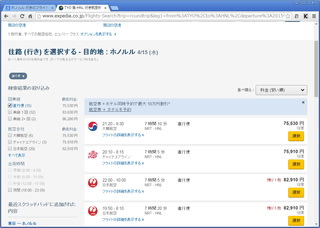ためしに、日程など同じ条件で、エクスペディアでも検索。