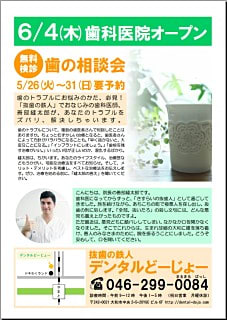 歯科医院オープンのチラシ 教材(Word) X Facebook LINE コピー 2015.03.29 歯医者さんの開院のチラシを、作ってみます。 チラシ作成の基本的な機能のみ、使っていきます。 テーマカラーを2色決めて、デザインします。 あとで色変更がしやすいように、 アクセント色として指定しておきましょう。 テキストのダウンロードは、こちら。 test ad