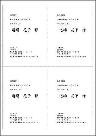 「A4用紙に、ハガキ4枚分をレイアウトし、印刷後に裁断する。」