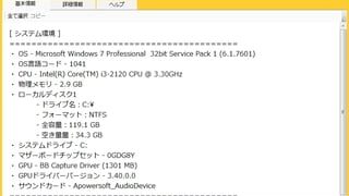 パソコン パソコン環境を教えてくれるアプリ 自分のパソコン環境を、詳細に教えてくれるアプリ。 「ちょぷり」 パソコントラブルに見舞われたとき、環境を聞かれます。 でも、初心者のかたは、その質問自体が「???」だったり。 自分で対処できないから聞いているのに、 「サウンドカードは、何が... 2015.04.26 パソコン