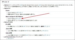 「メカブ」ページのダウンロード項目で、「mecab-0.996.exe」を入手