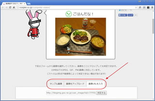 「サンプル画像」「画像をアップロード」「画像URLを入力」タブがあります。