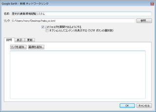 「追加」メニュー→「ネットワークリンク」で、