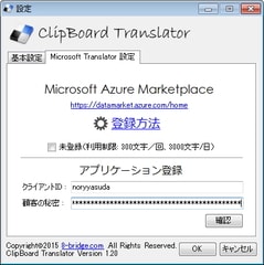 Microsoft Translatorに登録した場合、「未登録」チェックを外して、