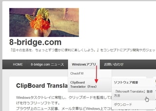 「Windowsアプリ」メニューにマウスオン→「ClipBoard Translator(Free)」→「ダウンロード」