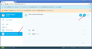左側の通話相手に、「Echo/Sound Test Service」を選んで、