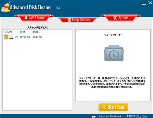 起動すると、上部に「Fast Cleaner」「Deep Cleaner」「Options」というタブがあります。