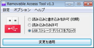 USB接続などのリムーバブルドライブへのアクセスを、制限できるアプリ。