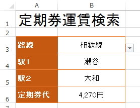 定期券運賃検索(1) 教材(Excel) X Facebook LINE コピー 2015.09.18 定期券の運賃検索システムを、作ってみます。 今回は、鉄道路線1つのパターンで作ります。 駅名選択には、リスト形式の入力規則を使います。 関数では、Index関数やMatch関数といった、 検索/行列関数を使います。 テキストのダウンロードは、こちら。 test ad