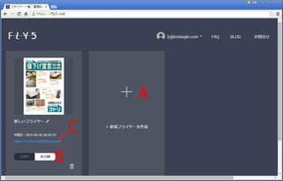 A「新規フライヤー」をクリックして、PDFファイルをアップロードします。
