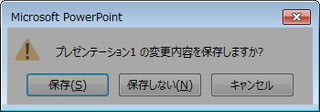 パワーポイントで、未保存のファイルを閉じようとすると、