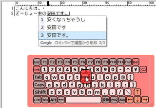 候補を決めると、マウスカーソル位置がEnterキーになります。