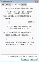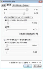 マウスカーソルが何秒離れたら透明化するかを、指定します。