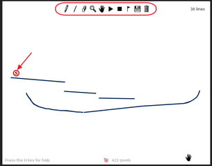 ペンや線ツールでコースを描くと、Sマークが出ます。