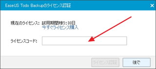(期限までに、ライセンスコードを入力して認証する必要があります。)