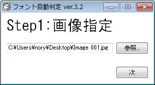 「参照」をクリックして、画像形式を選んで、文字画像ファイルを指定。