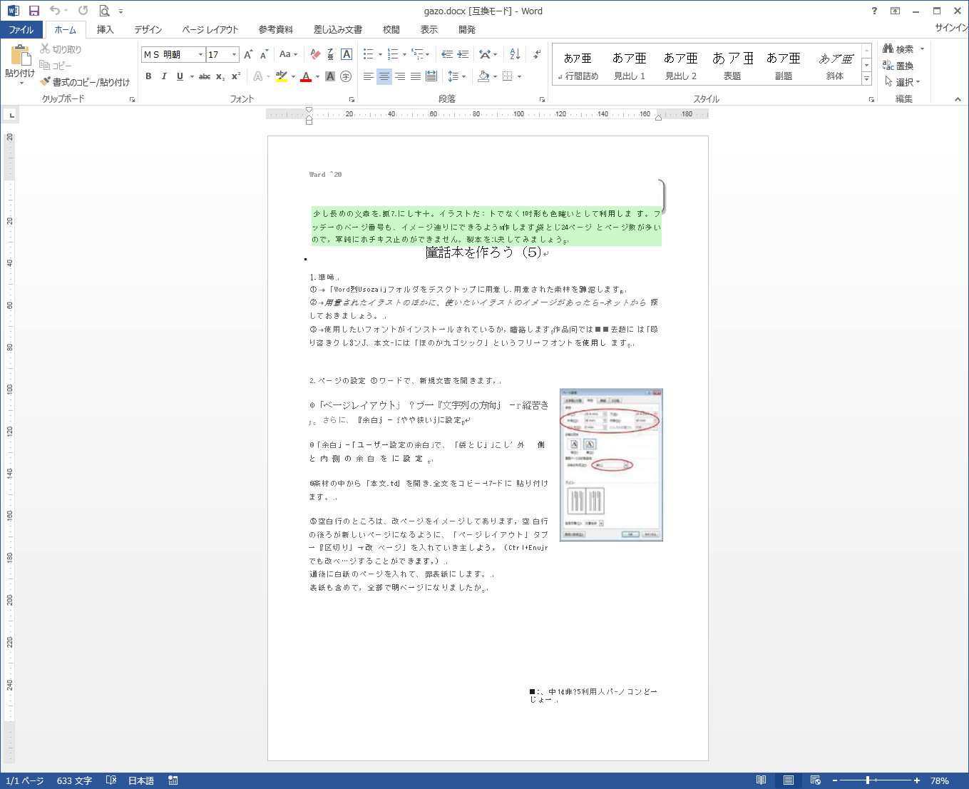 図の「文字列の折り返し」やヘッダー/フッターは、ちゃんと認識しました。