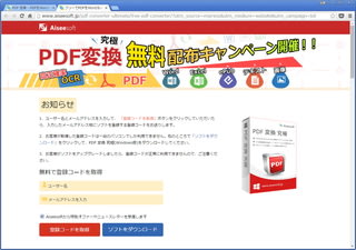 キャンペーン・ページを開き、ユーザー名とメールアドレスを入力。