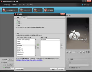 上部メニュー「環境設定」→「OCR」タブで、「Japanese」を選択。