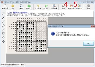 「お絵かきロジック工房」は、「診断」機能がついて、一意性確認ができます。
