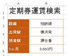 「定期券運賃検索 (1) (2)」と同様の検索シートを、