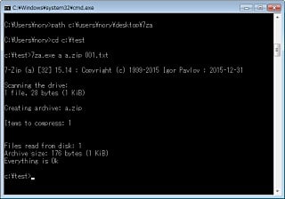 コマンドラインから、Zip圧縮・解凍できるソフト。