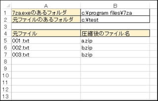 1.B1セルに、「7za.exe」のあるフォルダパスを入力する。