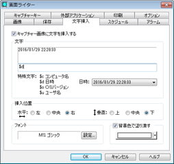「文字挿入」タブで、キャプチャ画像にどんな文字を入れるか指定。