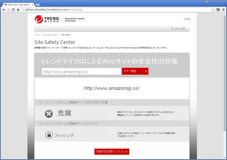 Amazomjpを、トレンドマイクロのチェックサービスで調べると、
