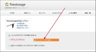 ダウンロードページで、「ダウンロード」ボタンをクリック