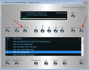 「PLAYLIST」ボタンで、音楽ファイルの指定など。