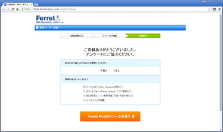 URLをクリックして、アンケートに答えて、「Ferret PLUSのツールを使う」。