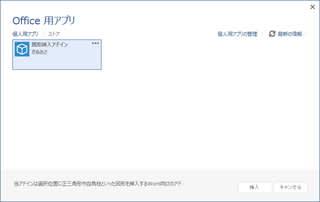ワードを起動し、「挿入」タブ→「個人用アプリ」で、