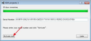 Serial Numberを聞いてくるので、コードをコピペして、「Activate now」。
