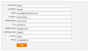 表示されたページで、名前(半角英数)やメールアドレスを入力して、「Send」。