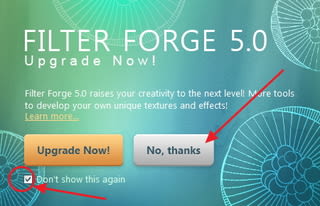 「Don’t show ~」にチェックして、「No, thanks」をクリック。