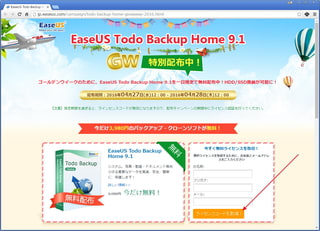 「EaseUS Todo Backup Home」が、また無料キャンペーンをしています。