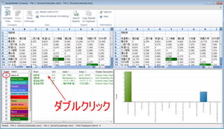 また、差分リストウィンドウで、要素をダブルクリックすると・・・