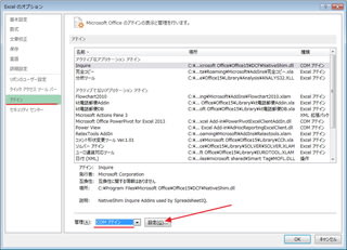 エクセルを起動し、「ファイル」メニュー→「アドイン」。