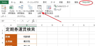 どちらかのウィンドウで、「INQUIRE」タブ→「ファイルの比較」。