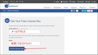 メールアドレスと名前を入力して、「Get free license key」をクリック。
