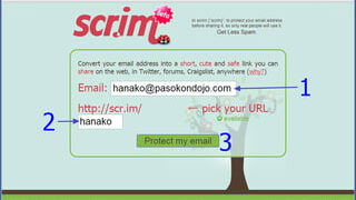 パソコン メールアドレスをURLに偽装 スパム防止のため、メールアドレスをURLに偽装してくれるサービス。 「scr.im」 ちょっと変わったサービス。 「連絡は、こちらにどうぞ」と、 メールアドレスをWeb上に載せたくなるときがあります。 でも、そのまま載せちゃうと、収集ロボッ... 2016.05.18 パソコン