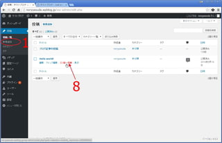 「投稿一覧」で、記事にマウスオンすると、サブメニューが出ます。