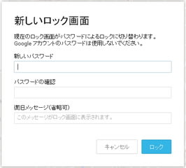 ロックするためのパスワード(Googleアカウントとは別)を指定して、