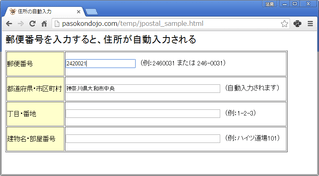 郵便番号から住所入力するWebページを、簡単に作れます。