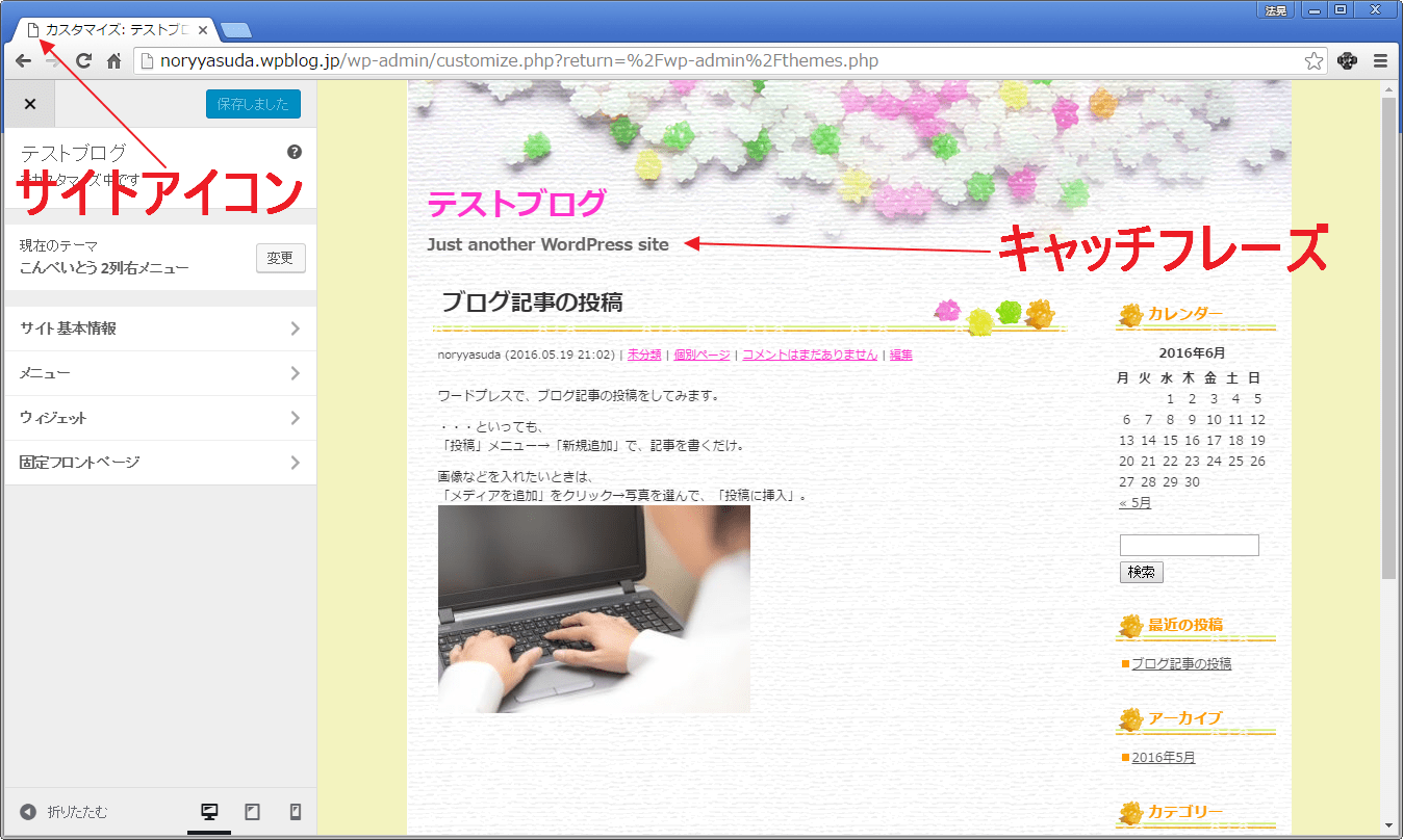 サイトアイコン(ファビコン)とキャッチフレーズを、変更してみます。