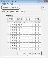 たとえば、勤務時間を入力していくと、合計が下に計算されます。